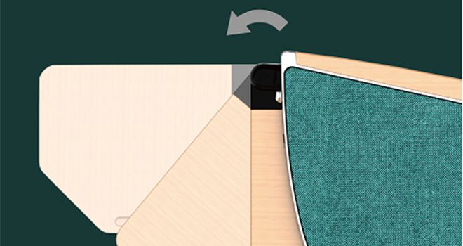 एल्यूमीनियम में निर्मित लेखन बोर्ड 90° घूम सकता है और आर्मरेस्ट में समा सकता है, जिससे जगह की बचत होती है।