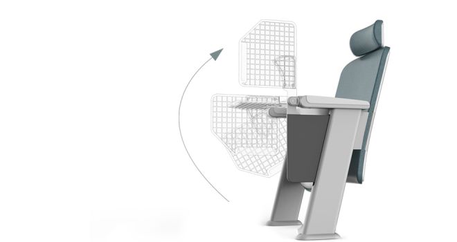 सीट कुशन आसन के आधार पर आराम को समायोजित करता है और उपयोगकर्ता के खड़े होने पर स्वचालित रूप से मुड़ जाता है।