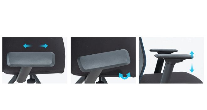 पीयू कवर आर्मरेस्ट, मुलायम और आरामदायक, ऊपर और नीचे/आगे/घूमने योग्य, चौतरफा आर्मरेस्ट समायोजित किया जा सकता है।