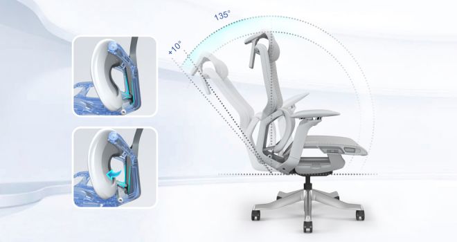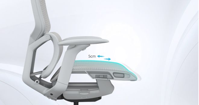 आगे की ओर झुकी सीट कुशन डिजाइन के साथ 5 सेमी की एडजस्टेबल सीट गहराई