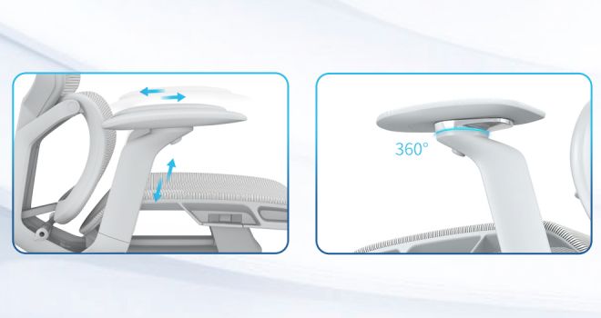 नियमित: 4डी एडजस्टेबल आर्मरेस्ट उन्नत: 360° एडजस्टेबल आर्मरेस्ट