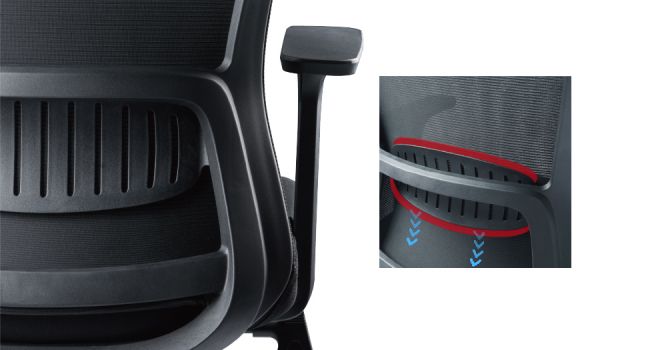 केंद्र को चौड़ा करने वाला डिज़ाइन मानव कमर क्षेत्र में बेहतर रूप से फिट बैठता है, जिससे सीट मानव शरीर के बैठने की स्थिति में बदलाव के अनुकूल हो जाती है।