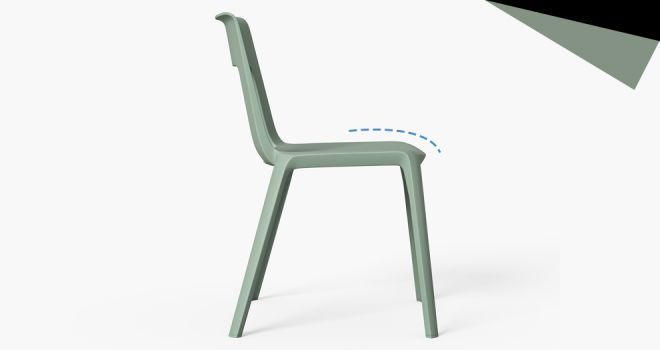 सीट के किनारे पर घुमावदार डिज़ाइन, पैरों के कर्व को फिट करते हुए